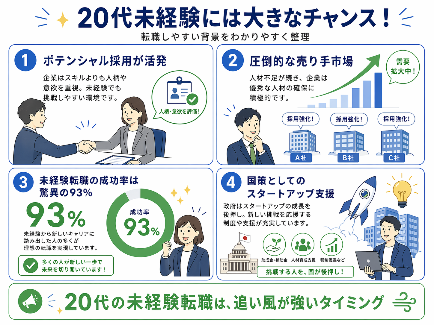 20代未経験でベンチャー転職は可能?成功率93%の実態と企業選びのコツ【2026年版】